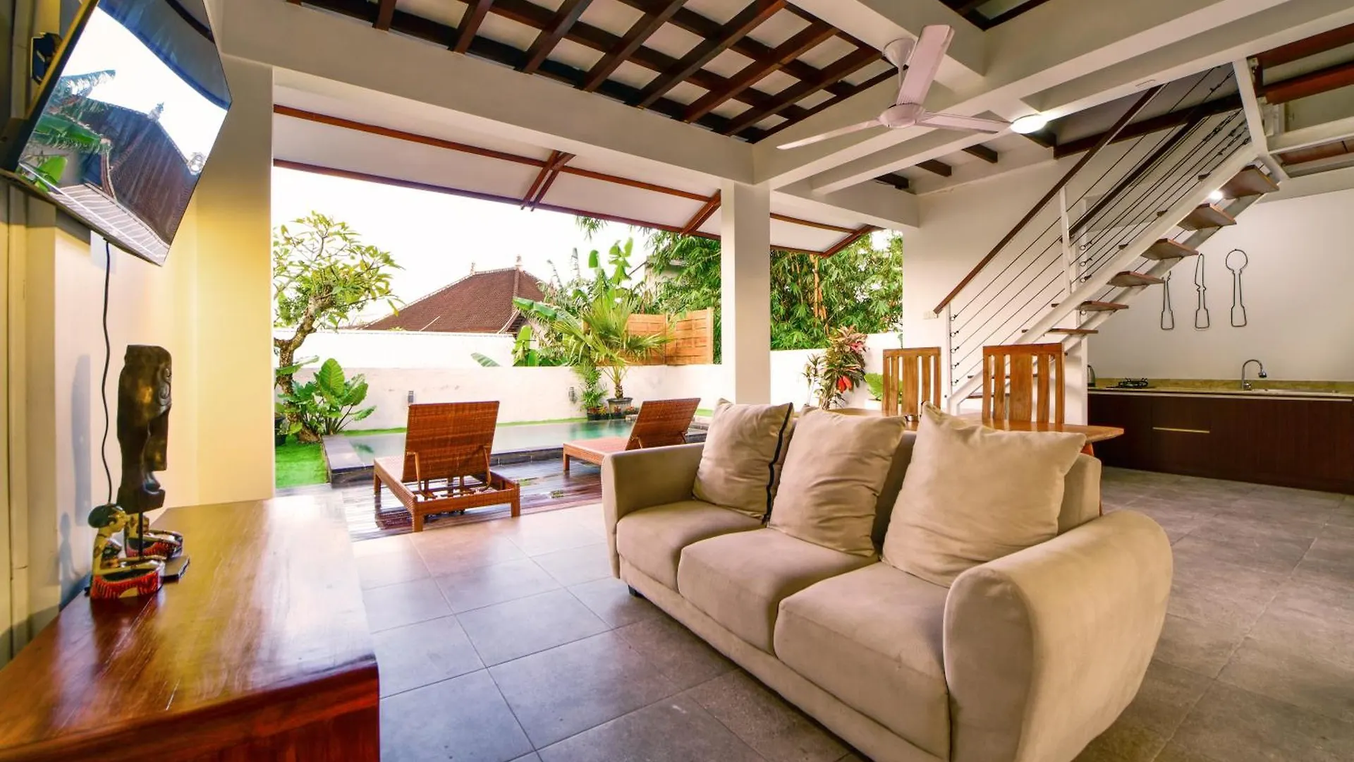 Vous pourrez utiliser du thé offert, fournis dans un coin repas. Vous trouverez également une cafétière/théière électrique, un réfrigérateur et de la vaisselle pour préparer votre propre repas. Vous pourrez dîner à Warung Rumpi's, situé juste à quelques pas du bâtiment. L'arrêt de bus Seminyak Village - Line 4 est situé à 500 mètres, vous permettant de découvrir Seminyak.
